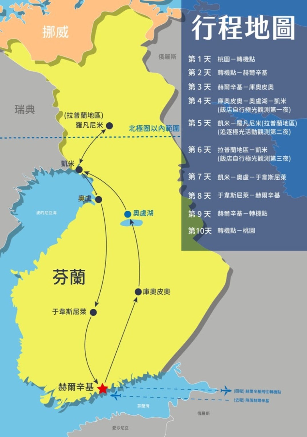 庫奧皮奧→219km奧盧湖OULO→105km凱米KEMI (飯店自行觀測極光第一夜)-