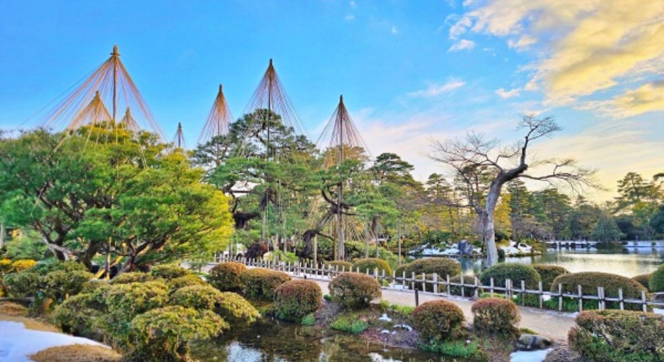 是日本屈指可數、兼具寬廣及美景的林泉迴遊式大庭園,與茨城縣水戶市的偕樂園、岡山縣岡山市的後樂園同稱日本三大名園,可說是代表金澤的名勝。曾經是擁有百萬石加賀籓籓主前田家的私人庭園,佔地約11萬平方公尺,從第5代籓主前田綱紀開始營建直到第13代籓主前田齊泰完成為止共花費180年的歲月。1874年對外公開,為特別名勝
