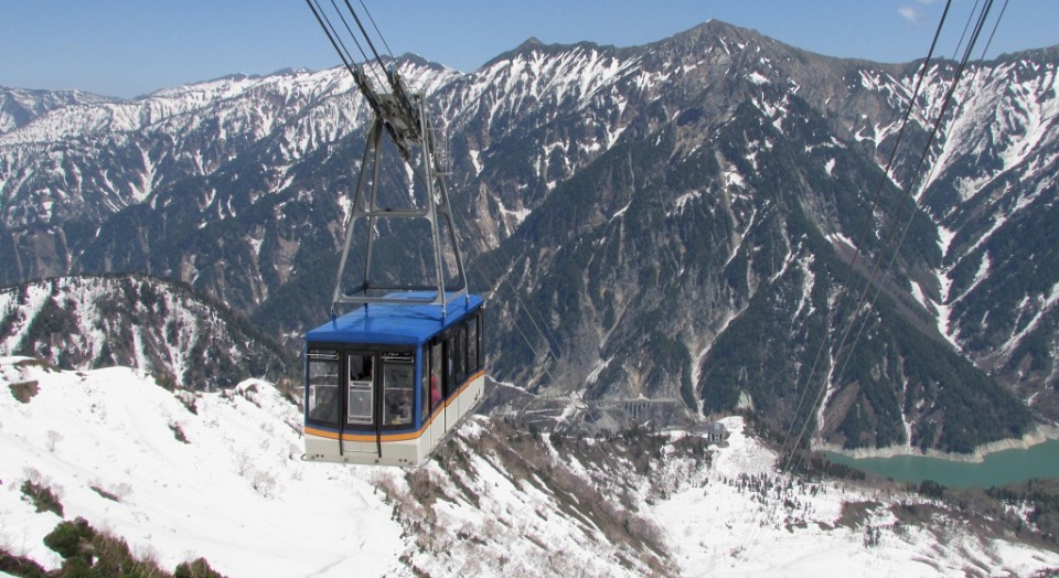 黑部平-大觀峰,1.7公里/7分鐘長1710公尺的纜車,是日本第一長的纜車,而且中間一根支柱都沒有,加上黑部平和大觀峰的標高落差500公尺,這個纜車坐起來很刺激,再加上它的四面大全景可是千金難買,難怪有移動的展望台的稱號。