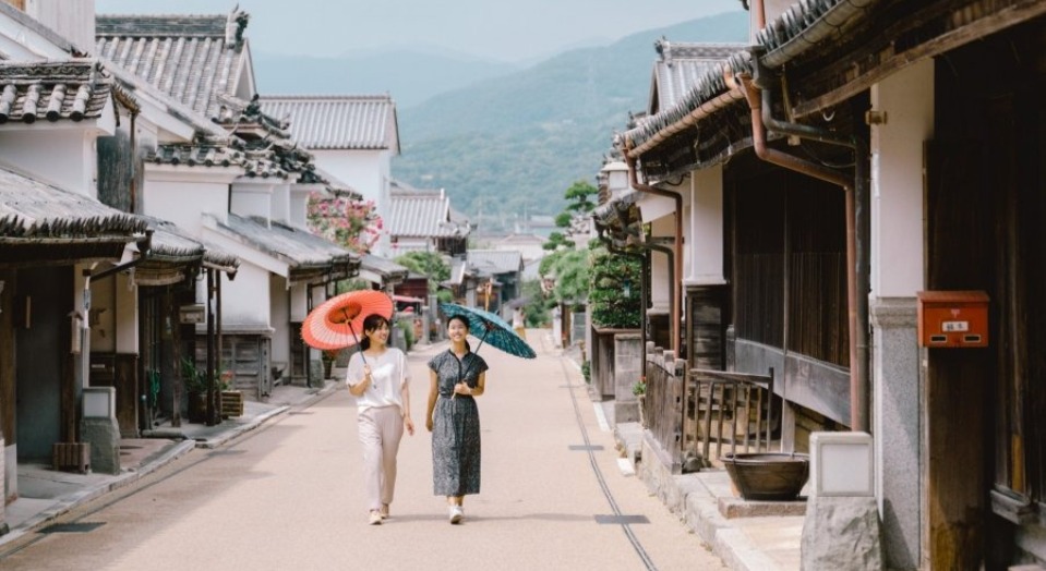 美馬市脇町自江戶時代中期起,就以藍染的集散地興盛繁華,裝設富裕象徵「卯建」的民宅並排長達 430 公尺。現存最古老的建築建於 1707 年。除了卯建之外,蟲籠窗、蔀戶這些傳統建築只存在於此處歷史悠久的屋宅,各個看點十足。在昭和63年受為國家指定為重要傳統建築物保存地區。