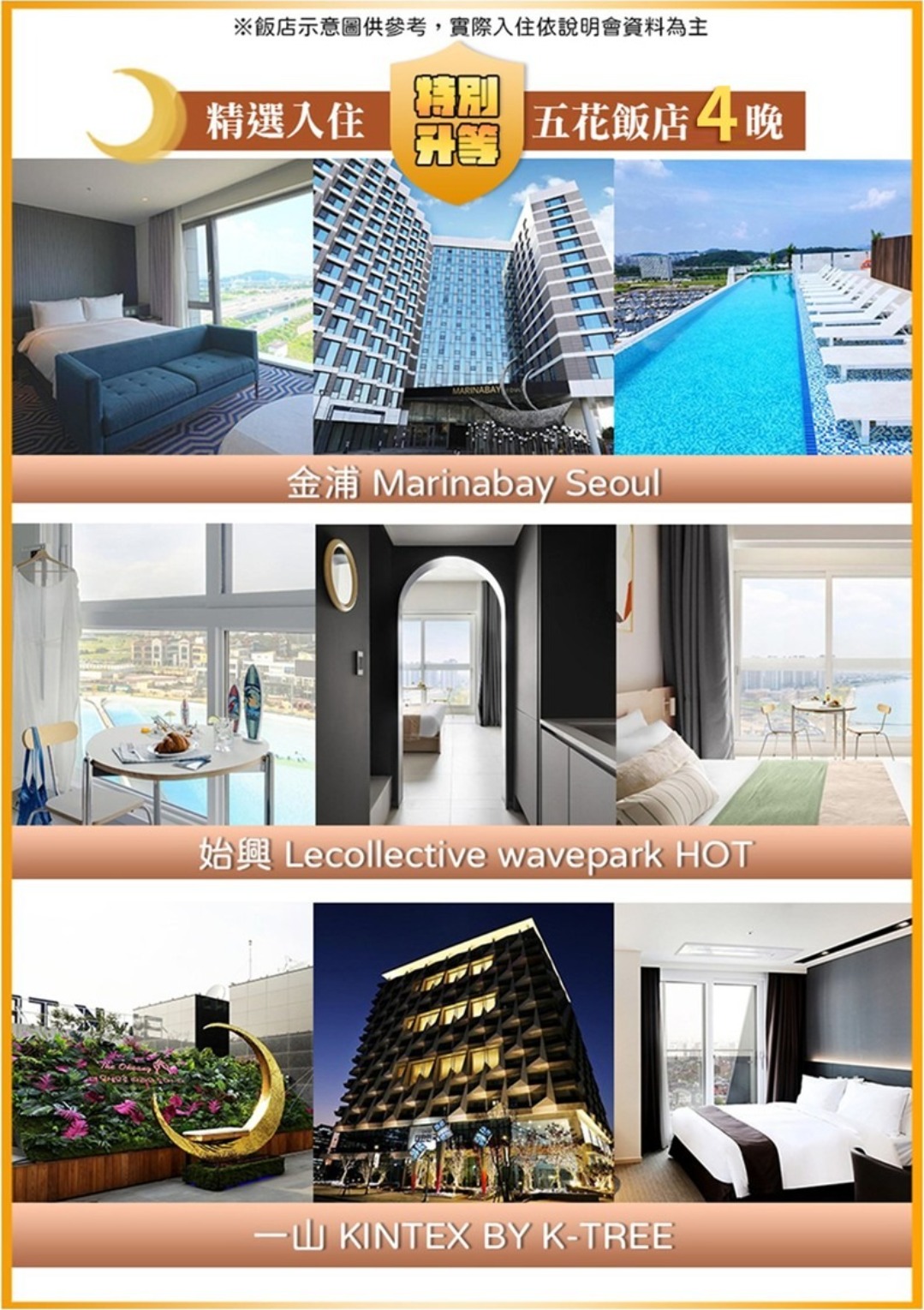 升等五花飯店~金浦MARINABAY HOTEL或一山KINTEX BY K-TREE或 始興Lecollectivewavepark HOTEL同級