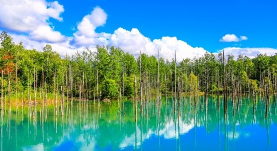 美瑛青池又稱「白金青池」、「美瑛白金青池」,位於北海道旭川市北部的美瑛地區,是許多人到北海道都會慕名前往的景點之一。整座池水呈現青綠色,池水在不同季節、不同時間、不同光線下而產生的樣子都截然不同。也因此,這樣的美景在2012年7月被蘋果公司設為MacBook pro的內建開機桌面,成為日本最知名的電腦桌布。