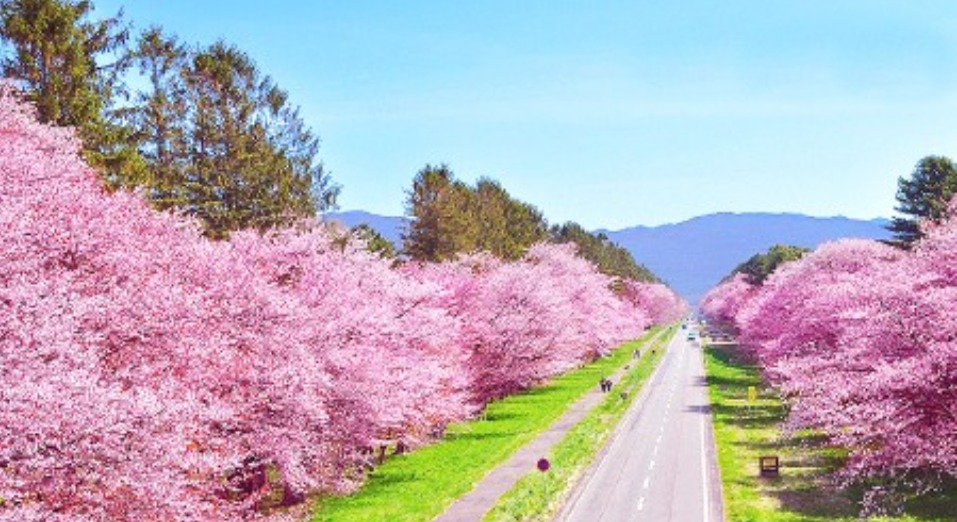 一邊欣賞近200株櫻花在兩旁搖曳生姿的麗景緻、一邊感受北國的春天。