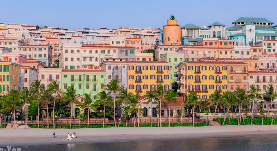 整體以義大利阿瑪菲海岸為設計靈感,繽紛的彩色建築依山傍海而建,搭配藍白色調與拱門街道,營造出濃厚的地中海度假氛圍。小鎮街道錯落有致,沿途可見咖啡館、特色商店與觀景平台,無論白天或傍晚都非常適合散步拍照。