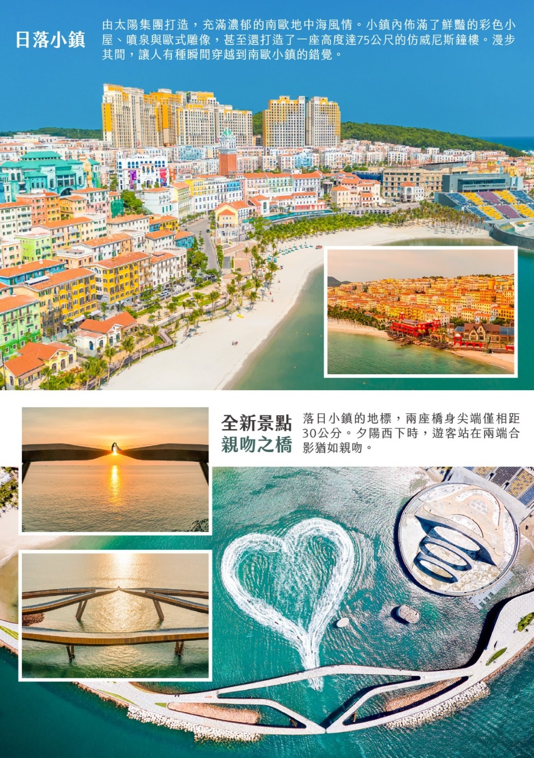 世界紀錄最長跨海纜車~360度海景盡收眼底→太陽世界香島自然公園→地中海小鎮(日落小鎮)、2023年全新景點~親吻之橋-