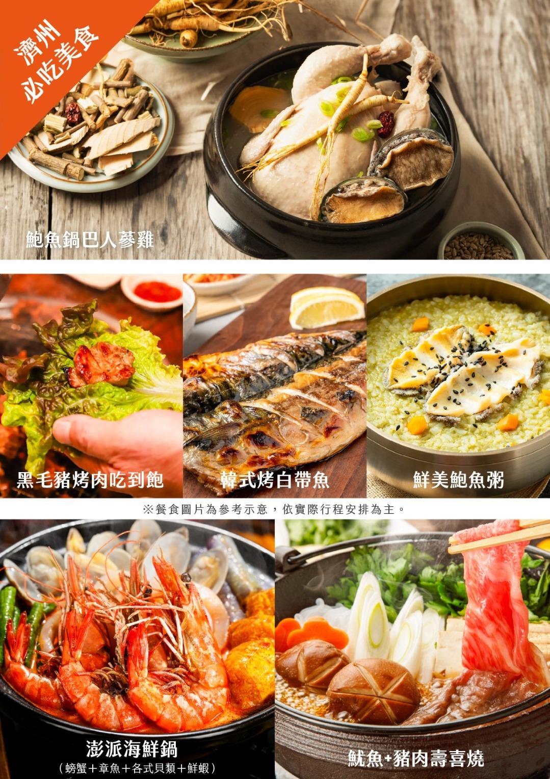 •報名付訂金時請一併告之特殊餐食 例如:全程素食或不吃牛肉或其它餐食,請於出發前告知業務人員,以便提早為您準備。(在韓國茹素者為少數,故素食菜色並不常見。建議茹素旅客如前往韓國旅遊,請先自備素食罐頭或泡麵等,以備不時之需。 )