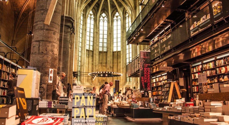 是世界知名的書店地標。書店座落於13世紀的多米尼加教堂內,哥德式拱頂與彩色玻璃窗與書架交相輝映,營造出宛如「知識天堂」的氛圍。寬敞挑高的空間、雅致木質書架與自然光線完美結合,讓閱讀與建築之美融為一體。